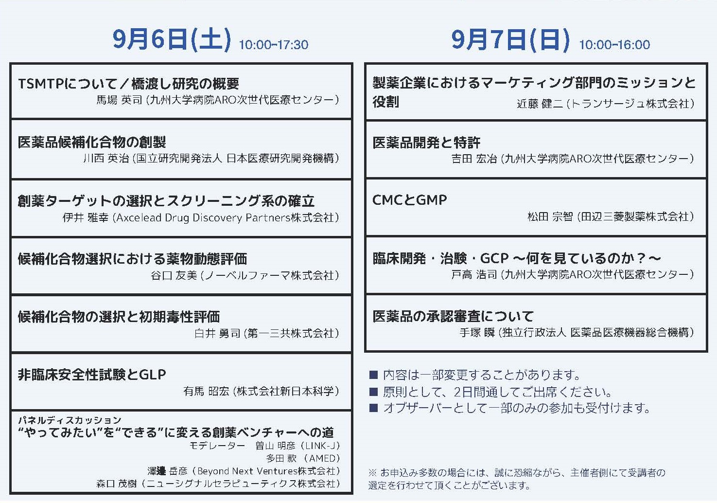 今年も低分子創薬の基礎を体系的に学べるよう、2日間を通して大変充実した内容となっております。